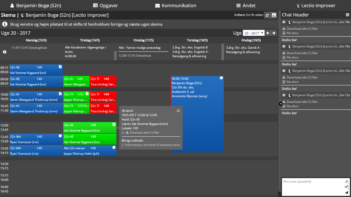 Lectio Improver giver Lectio et nyt og moderne design med tonsvis af feautures. Blandt de mange features er blandt andet auto login, smart opgavelist, download alle filer, notificationer, karaktergennemsnit, multifraværsårsag og meget mere!